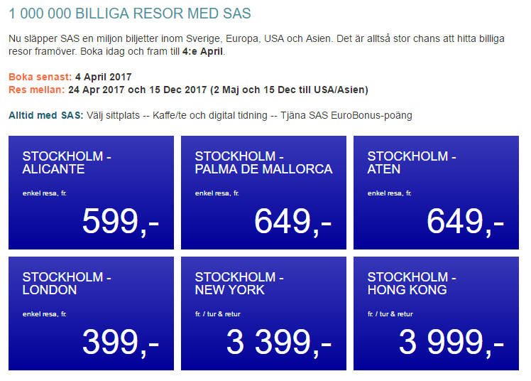 Det är nya priser på flera destinationer jag tittat på, tyvärr inte på rätt dagar för mig men fick ändå bli en bokning som måste göras.