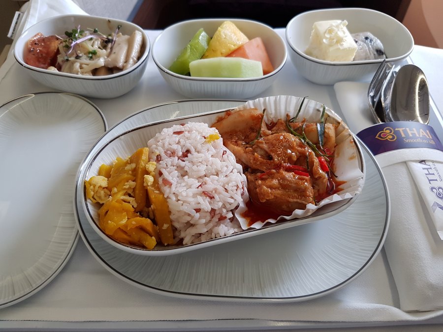 På denna flight var det tillbaka i Business som gällde, det tar ett tag att ställa om från hur det fungerar i First, snacka om lyxproblem. Blev väldigt glad över att se paeneng på menyn och denna var ju från Bangkok och var mycket bättre.