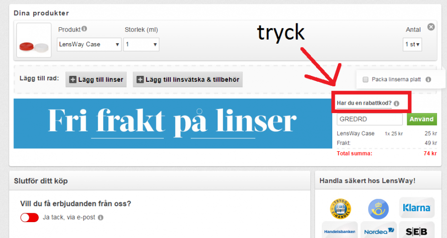 Hur avbokade du? Råkade lägga en beställning mot faktura (missade var man ändrade till kort). Får väl ringa deras support om inte annatJag hittade kodrutan precis efter att jag postat mitt inlägg. Har avbokat den beställning som blev gjord utan kod och har nu beställt ett 10-tal med rätt kod istället.