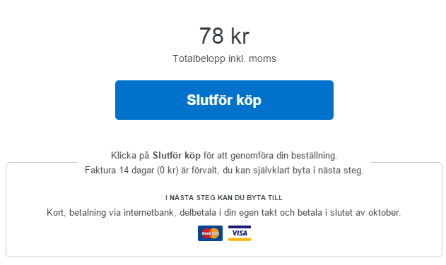 En sak du måste tänka på är att Klarna inte blandas in i detta förrän ordern är lagd. Först lägger du ordern och får det på faktura, sen kan du direkt när ordern är lagd välja att betala fakturan hos Klarna via deras betallösning på nätet. Du har med andra ord lagt en order till Lensway i deras system, innan betalning kommer från Klarna.