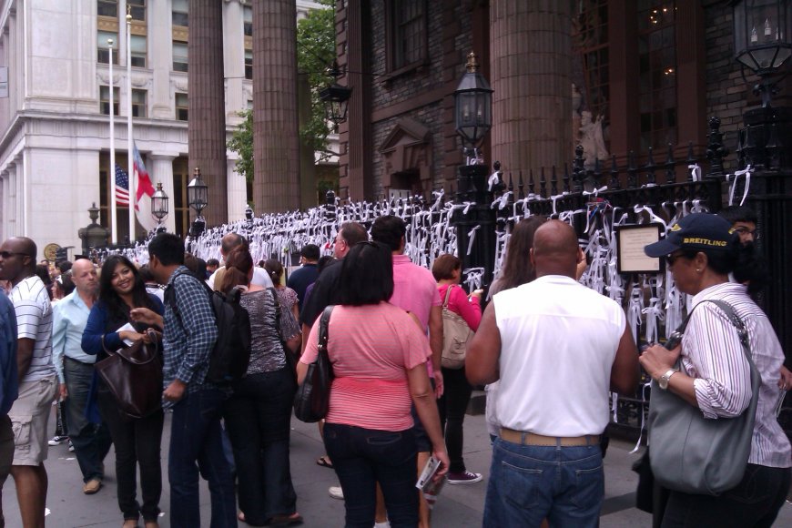 Jag är i New York nu och jag märker en hel del referenser till vad som hände för 10 år sen. Det nämns på tv, i tidningar och man ser folk med kläder med text och bild som refererar till det här. Man ser också väldigt mycket poliser ute och här och var står det militärer. Jag upplever dock inte någon direkt nervositet bland folk i allmänhet. Jag åkte tunnelbana till World Trade Center och det var mycket folk ute inklusive en del rättshaverister som demonstrerade om att "sanningen" måste fram(dvs att Bush var skyldig).