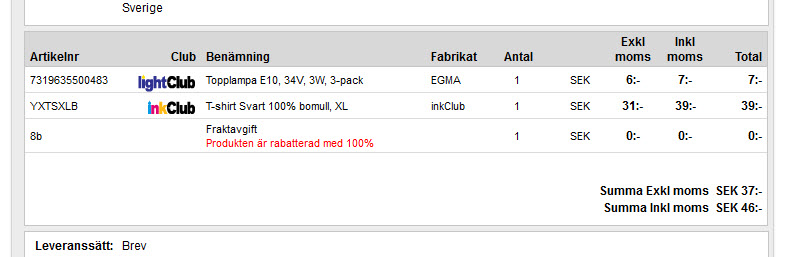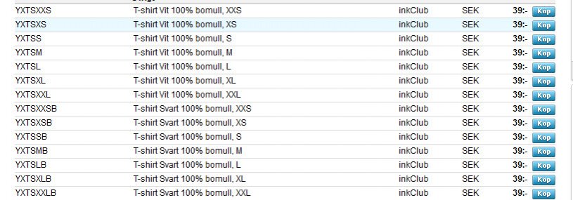 vilket ger 46 Skr för 900 points och en vit eller svart T-skirt.
