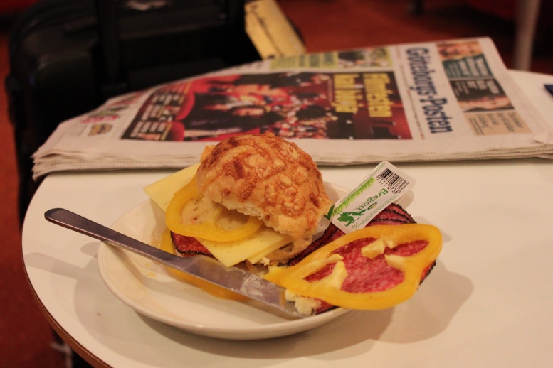 Väl ute på flygplatsen lämnades väskorna in och genom en tom säkerhetskontroll på väg mot loungen. Instämmer med många andra att Landvetter verkligen har fått ett lyft efter ombyggnaden. Eftersom avgången var efter morgonrusningen var det en tom lounge som mötte mig. Väl tillrätta blev det en frukostmacka och en GP.