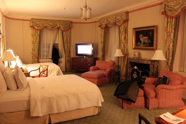 Rummet är alltså ett hörnrum på 40:e våningen med utsikt över Chrysler Building, Hudson River och Manhattans skyskrapor. Rummet andas elegans och flärd. Inredningen är gammaldags och anrik.