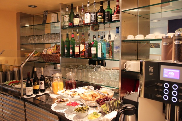 Senator-loungen var liten, men hade ett mycket bra utbud av varm och kall mat och dryck. Som ett extra stort plus så hade de Champagne Tattinger Cuvée Prestige Brut! Det fick bli några glas av denna ädla dryck och lite mat.