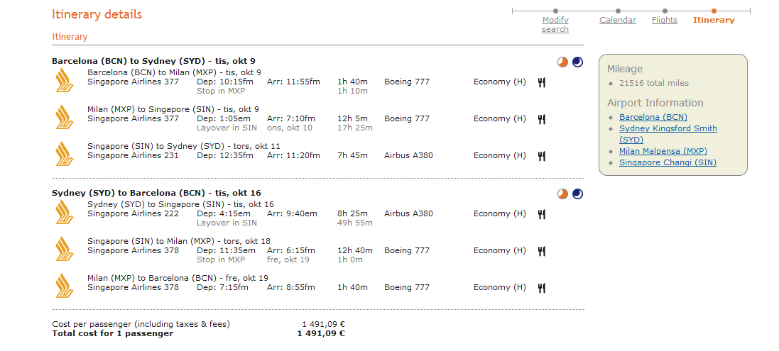Exakt 7460 miles bör du inte räkna med.. Aegean har en tendens att räkna sträckorna något kortare än gcmap.com. ARN-MXP skiljer t.ex 40 miles mellan gcmap & aegeans uträkningar.