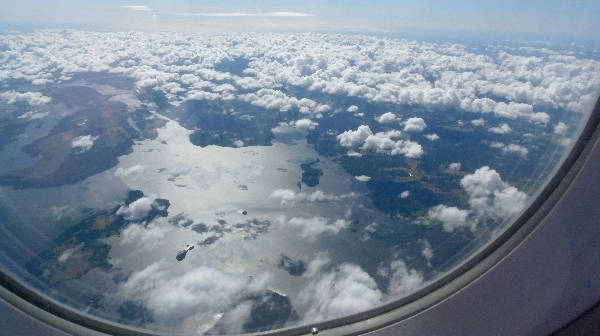Väl uppe i luften serverades lite frukost. Det blev lite salami och en Croissant (tack Nilsson!) för min del och sedan lutade jag mig mot fönstret och tog en tupplur. Jag vaknade inte förens kapten annonserade att vi påbörjade inflygningen.