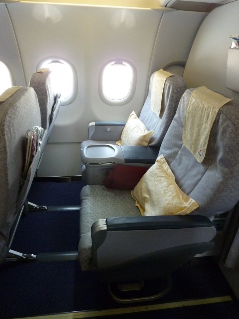 Har biljetter i C från HKG till PEK med Air China i juli. Noterar nu att det är 2-klasskonfiguration i en Airbus 321 med first/economy.