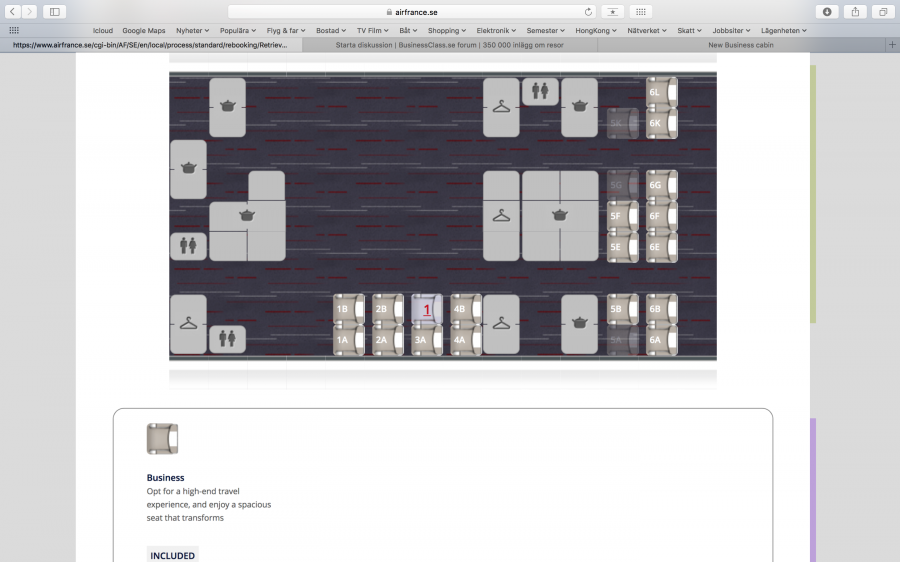 Min fråga är om Air France kör sin gamla Business Class på denna sträcka eller om de har konverterat? Jag blir dessutom förvirrad av hur kabinen ser ut då jag skall välja säte - någon som kan förklara /vet?