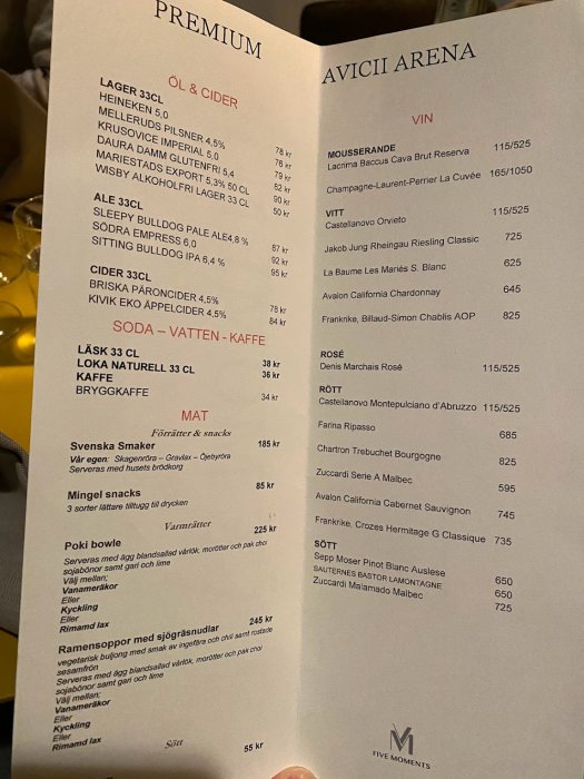 Vi hänvisades till att sitta på platserna närmast väggen för att de ut mot arenan var reserverade. Fine. Det kan jag köpa och vi hittade ett bord uppdukat för fyra, som de flesta bord var trots att få verkade besöka loungen i sällskap av fyra. Vi fick varsin drinkbiljett och beställde ett glas bubbel var. Inga problem det heller. Vi hade inte hunnit äta något så vi fick för oss att vi skulle prova menyn i loungen. Här skulle det visa sig bli lite bökigare än jag hade räknat med.
