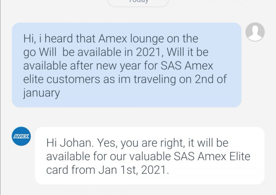 Har tydligen gått ut ett mail där det lite kryptiskt stod att SAS Amex Elite skulle få Lounge on the go på Arlanda under 2021 (står inte exakt när).