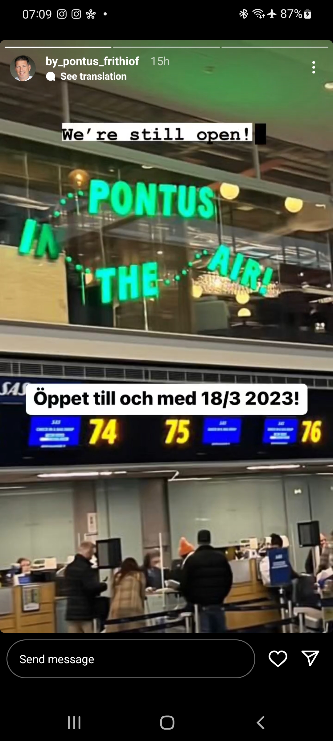 De verkar ha ändrat texten under dagen. Nu står det: "Pontus in the Air och American Express lounge stänger 18 mars"Och mitt i sportlovsrusningen. Vågar man dra slutsatsen att antingen vill ingen tjäna pengar, eller så har någon ett rejält horn i sidan till stället.