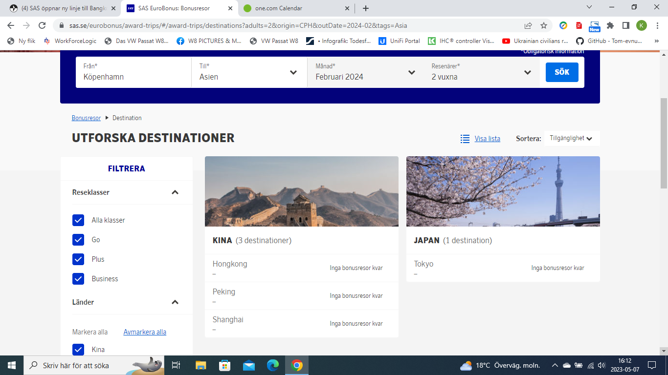 Söker du motsvarande till Nordamerika så finns det avgångar till samtliga destinationer utom Miami och Boston varje dag i plus (eller go). Asien är ovanligt tomt, men det kan ju ha att göra med osäkerheten på hur det går att flyga dit på så lång sikt.