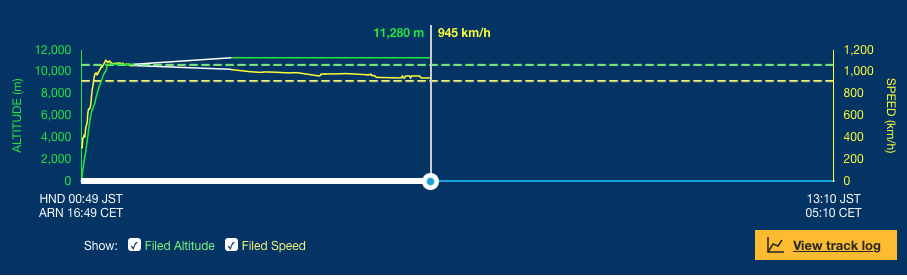 Som sagt, jag tror Flightradar bara räknar distans/hastighet på kortaste vägen och tar inte i beaktan att de inte får flyga över Ryssland. Skulle inte vara överraskad ifall 05:59 är nära sanningen.