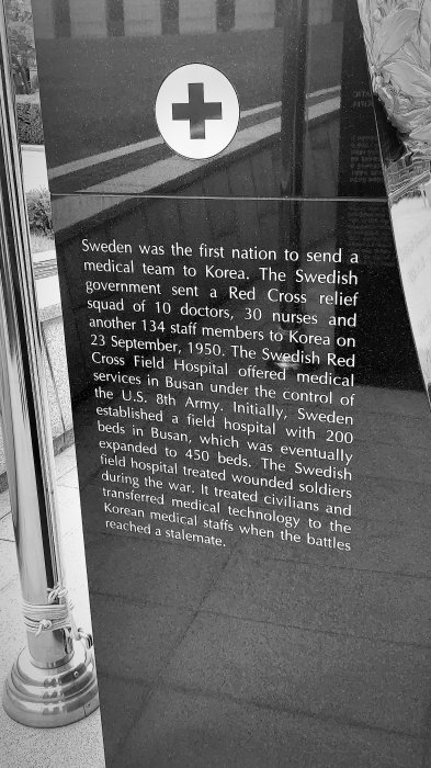 Utanför krigsmuseet, där Sydkorea med flaggor och informationstavlor hedrar alla länder som hjälpte de under Koreakriget. Sverige hjälpte genom medicinska insatser.