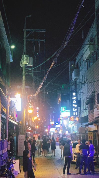 Nattklubbs-distrikt Itaewon, där vi besökte techno-klubben Faust.