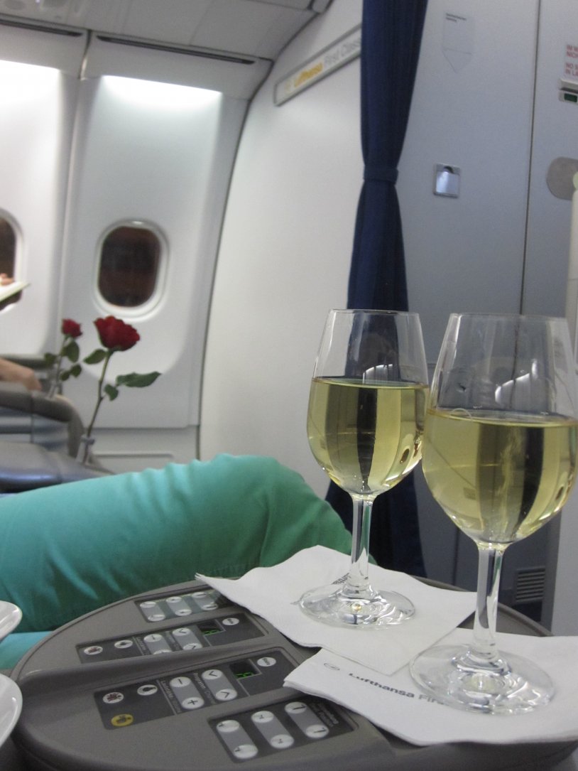Visst är stolarna inget man skriver hem om, men SQ har en känsla för service som de briljerade med. Även på denna relativt korta flygning blev vi fint Dom Perignonade i ett bubbligt lyckorus lagom till landning.
