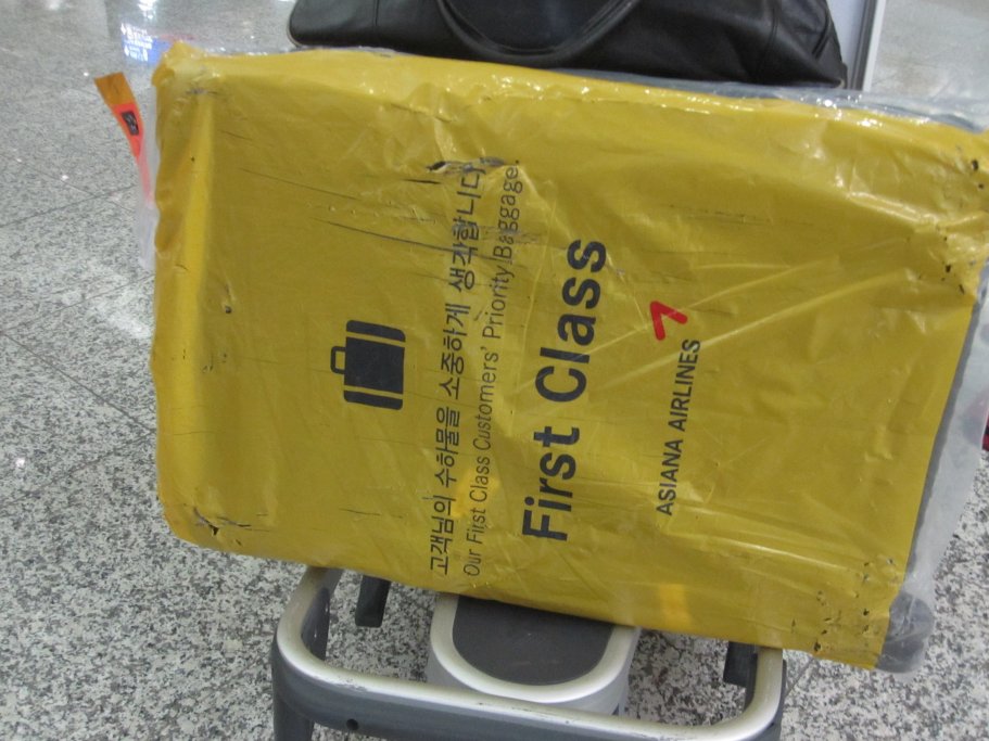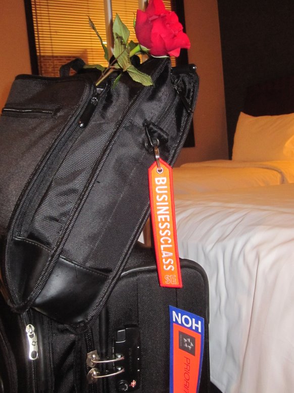 Vi lämnade Hilton Tokyo tidigt på morgon för att ta oss ut till flygplatsen för en flygning som vi verkligen sett framemot. Det var i princip öde på Narita och incheckningen gick snabbt. Till vår stora glädje fick vi våra väskor bästa tänkbara behandling med en tjusig tagg och en tjusigare påse.