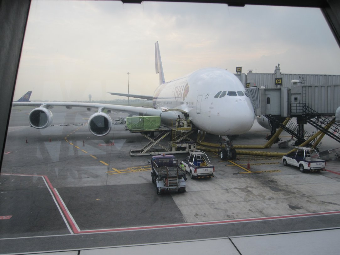 Lämnade Novotel Bangkok Suvarnabhumi Airport efter en kort natts sömn. Det är alltid lika trevligt att åka förstaklass från BKK med Thai då deras markprodukt för förstaklass resenärer håller hög klass. Allt från inchecken till golfbil förbi C klass loungen och myllret av personal som servar just dig. Det som borde förbättras är tillgången på mynta i baren. Deras mojitos är oförskämt fina.
