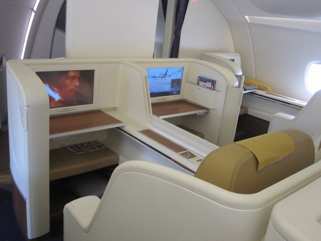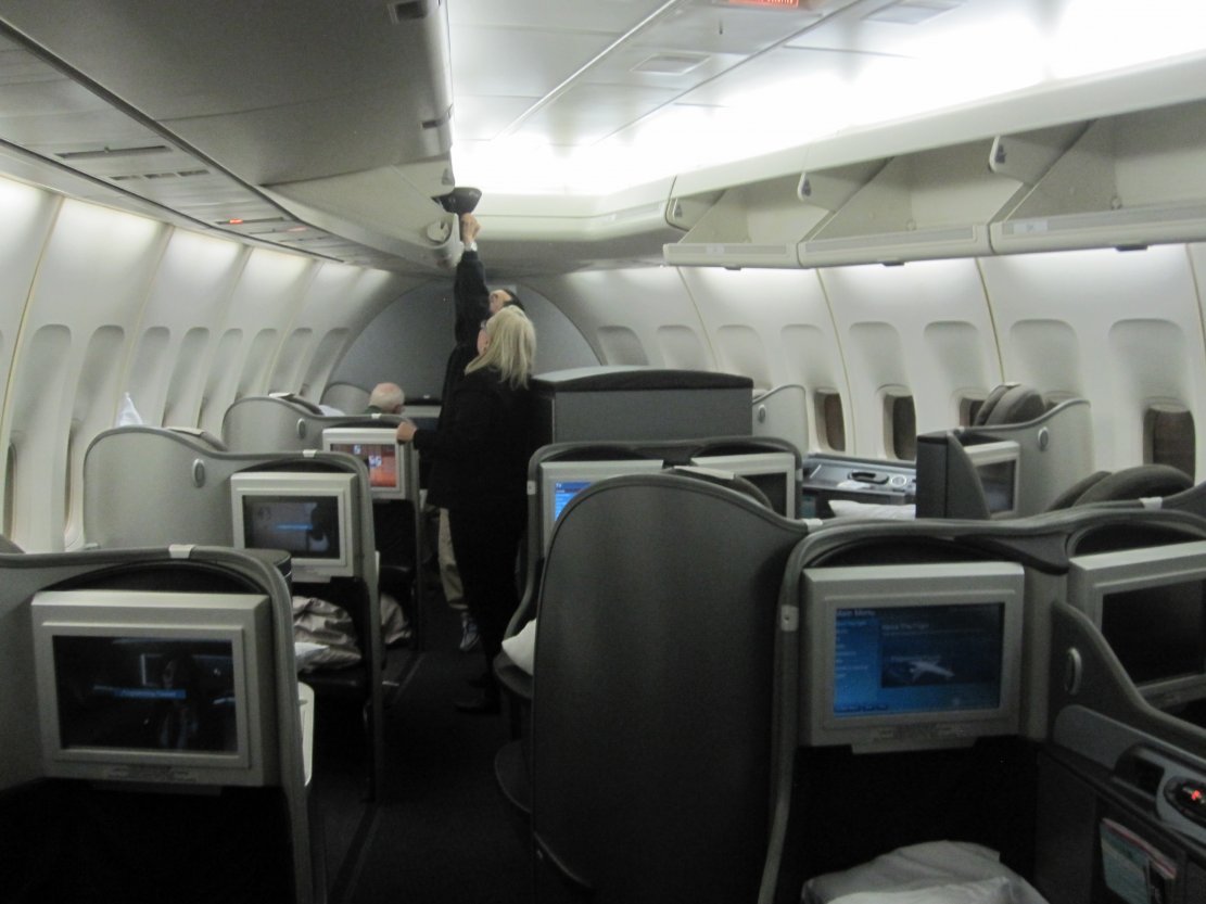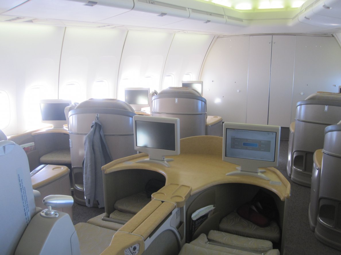 Väl vid incheckningen förklarade damen att det hade blivit ett flygplansbyte på vår flight och att det endast fanns 8 F stolar mot ursprungliga 12. Givetvis insåg vi att det handlade om de nya förstaklasstolarna som inte går att jämföra med den äldre versionen. Vi hann precis påbörja segerdansen innan förstaklassguden drog undan mattan för oss. Damen förklarade att vi mycket väl kunde få åka med den ursprunga flighten men att vi då skulle få smaka på en downgrade. Det var vi inte speciellt sugna på. F är F och inget man byter bort.