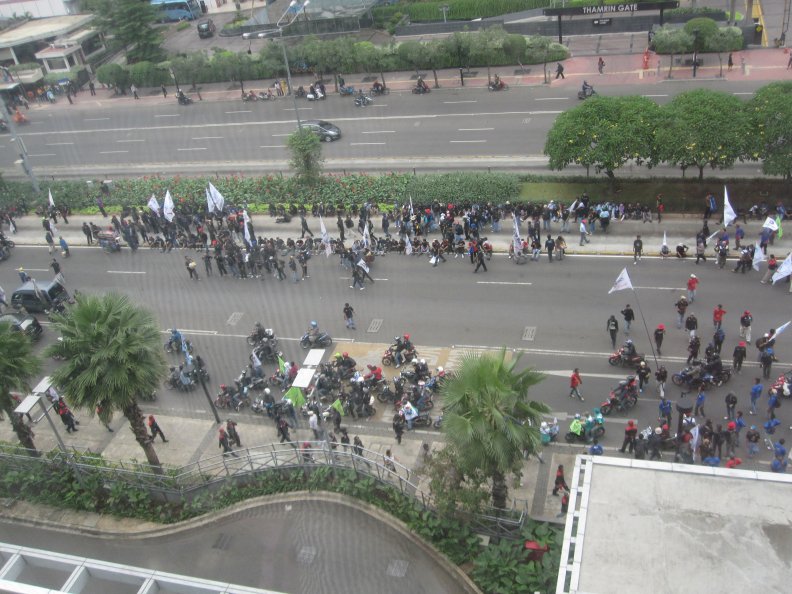 Bild från hotellrummet. Lugnt och städat på Jakartas gator ...