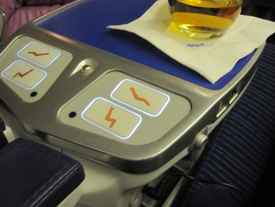 På denna nattflygning hade vi vissa förhoppningar om att kunna sova några av de ca 7h som flygningen skulle ta. Ack så fel vi hade. ANAs C klass stol får många andra mediokra C stolar att kännas ergonomiska och fantastiskt sköna. Det är bara att spana in fjärrkontrollen så får man obehagliga svettningar. Det är jobbigt att bli bortskämd med grymma stolar etc ...