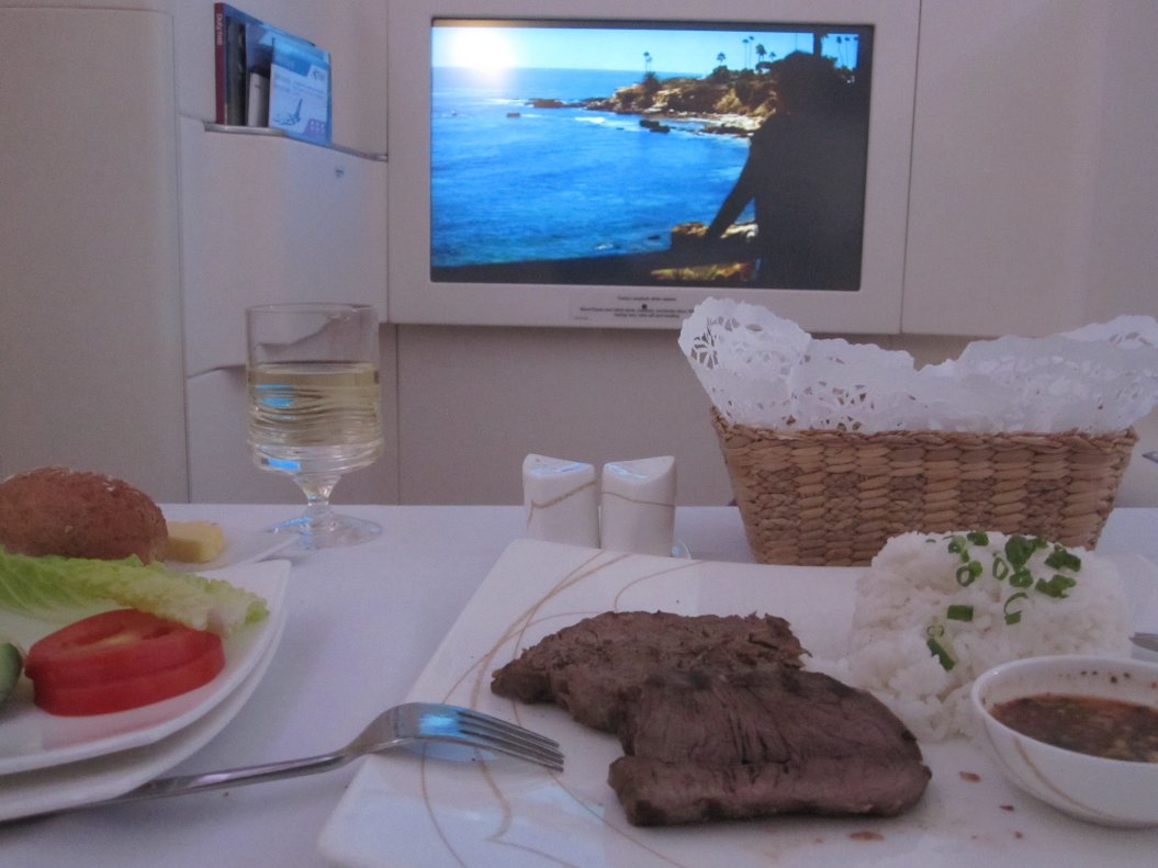 Asianas förstaklass har fått en hel del beröm och vi kan stolta stämma upp i hyllningskören. Det kändes redan från första stund att denna flygning skulle bli något extra. Ensamma i F. Trevligt bemötande av crewn. Otroligt professionell service med personlig touch samtidigt som de hade ganska skoj åt de två glada skumpadrickarnas försök att tömma flighten på Taittinger (det gick sådär). Den hårda produkten är inte bäst på marknaden, trots allt deras gamla F, samt att IFEn har några år på nacken. Men sammantaget är det fortfarande en helt enastående produkt!