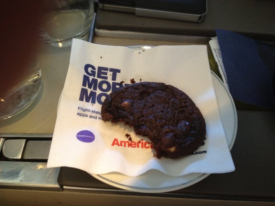 Vad med stolen? Jag får lite av NEK känslan inom Lufthansa gruppen när jag flyger med AA i F på B737-800an. Stolen är rätt tunn, sedan ”glider” man ner och framåt när man vill luta stolen, och inte rakt bakåt som ”old school” F stolar gör. Dock har den bra nackstöd för långa killar som jag. Jag tror taktiken med AA på B737-800an är att boka rad 4 på jämna och rad 5 på udda flightnummer. Då får man välja mat, något jag återkommer till strax. Överlags helt ok flight, dock är AAs kaffe sunkigaste i världen. 6/10, bra försök.