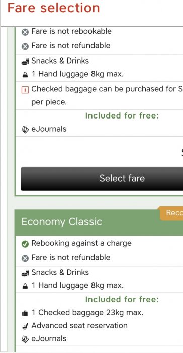 Vi har inget behov av incheckat bagage så det är mest bara seat selection vi skulle betal 2500 mer för.