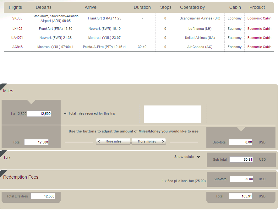 Stockholm - Frankfurt - New York - Montreal - Pointe-A-Pitre