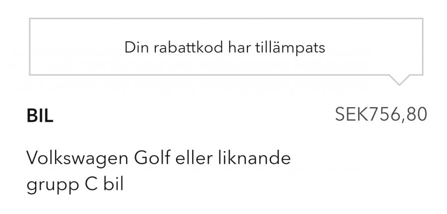 Kan din rabattkod vara att du angett ditt EuroBonus-nummer? Alla har någon sorts rabatt, och EB ger någon procent.Har min första på fredag så jag vet inte men på den (och förhoppningsvis resten, ska kolla nu) står det åtminstone som på bilden. Jag har inte angett någon rabattkod...