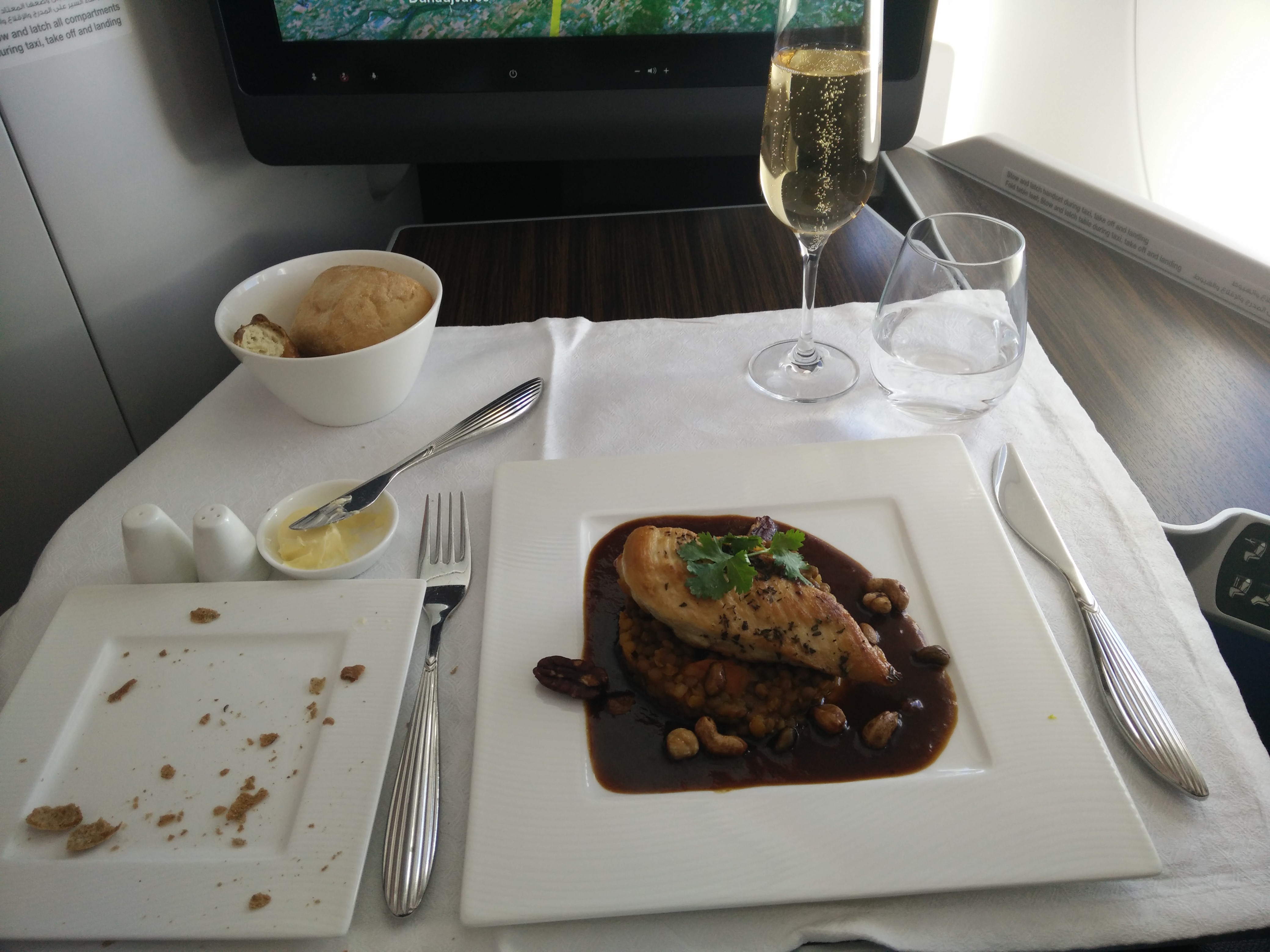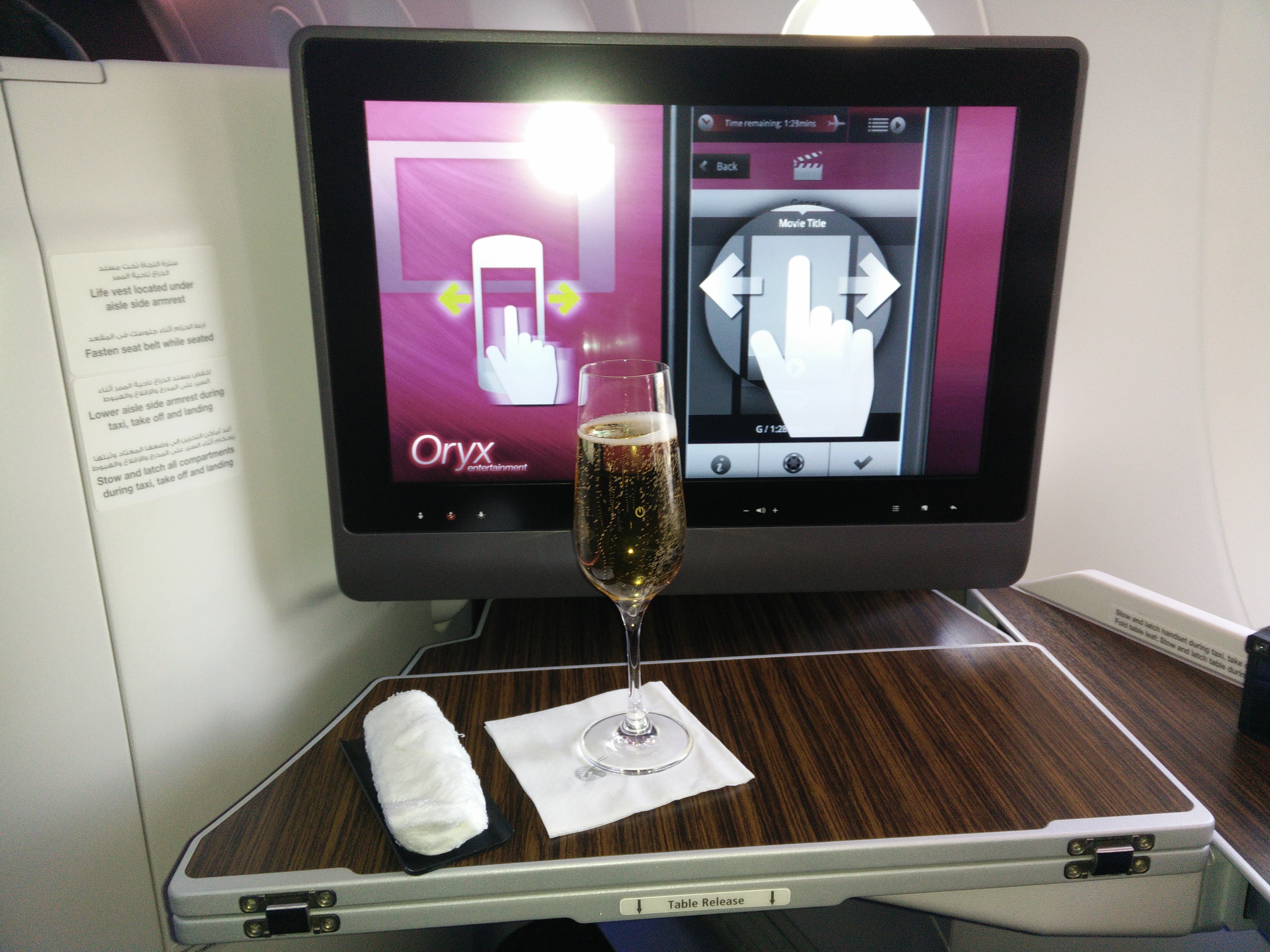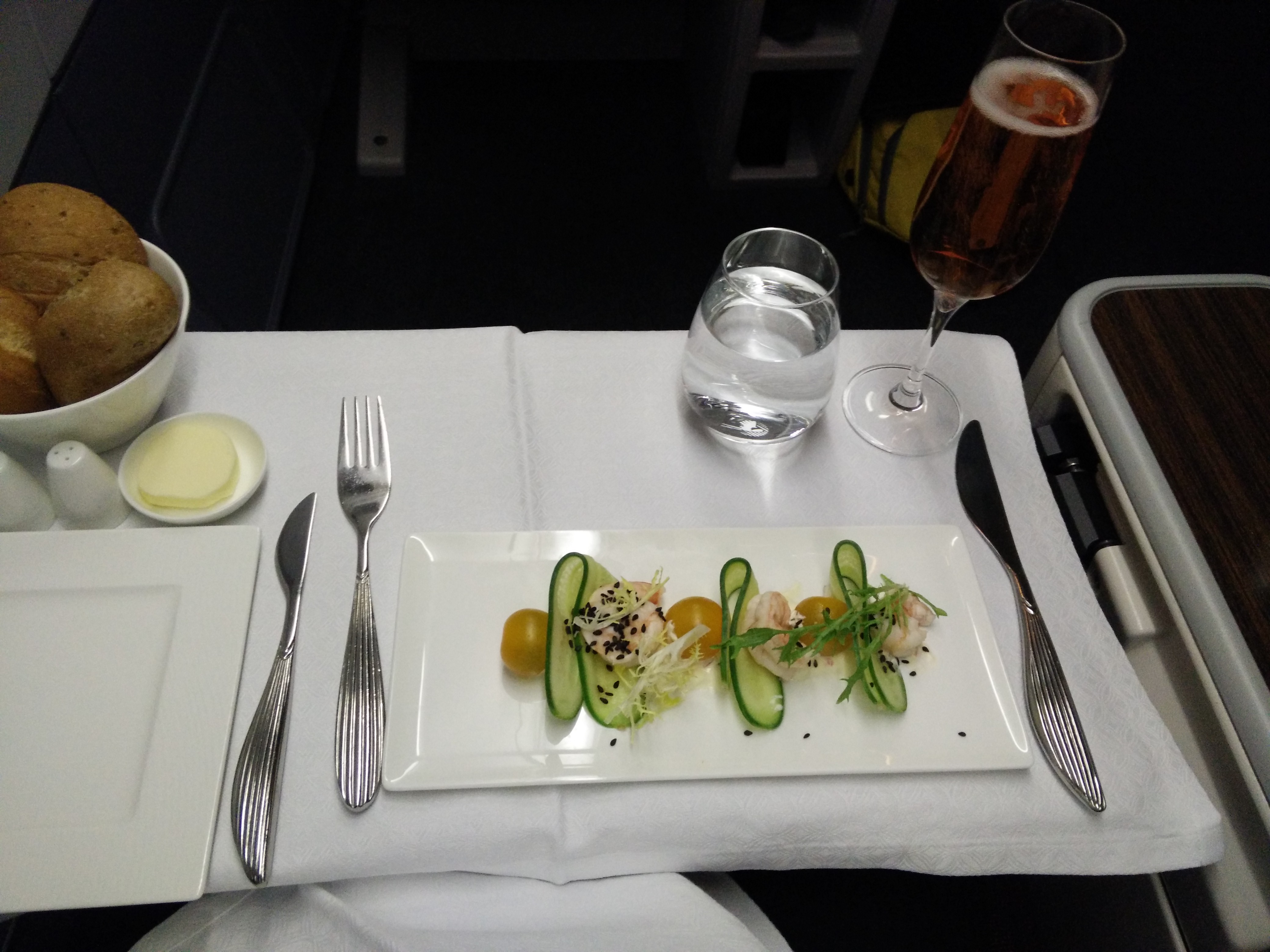 Var en j@vla luftgrop så jag fick både vatten och champagne på både byxor och sätet så fick sätta på mig pyjamasen man får samt byta säte och när vi landade var det torrt.