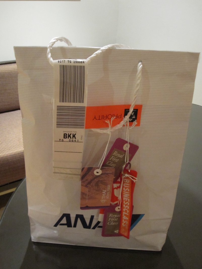 Tyckte att min nya fina ANA pyjamas och tandborste skulle få åka vältaggat och stiligt mellan NRT-BKK ...