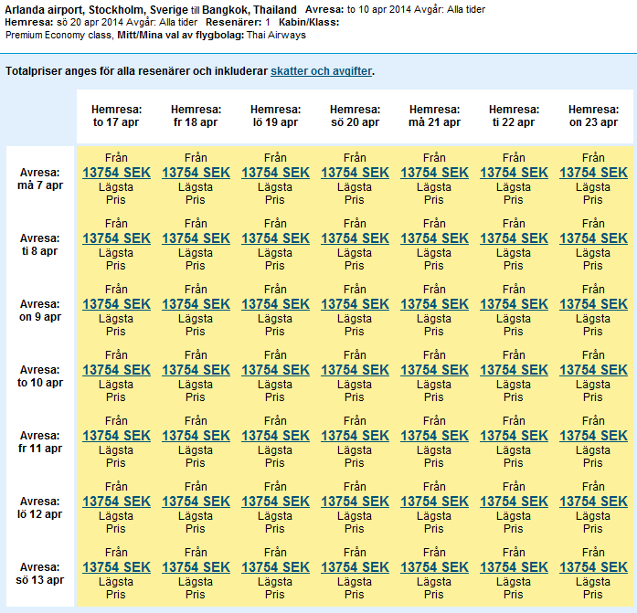 Jag skulle behöva lite hjälp med att hitta en prisvärd biljett till Bangkok över påsken. Hoppas ni lyckas hitta något som jag inte kan. Jag inser att jag är lite sent ute och att de flesta TK biljetterna är slut, men hoppas på något bra i alla fall. :)