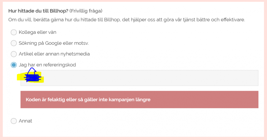 När jag klickar på en värvningslänk kommer jag nu till en annan sida än tidigare. Även om referenskoden blir ifylld automatisk som förut om man väljer att registrera nytt konto så är det nu en röd ruta med "Koden är felaktig eller så gäller inte kampanjen längre" som jag inte känner igen.
