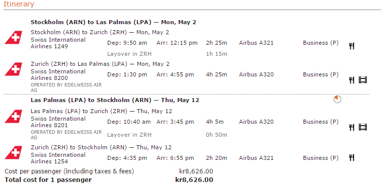 Å andra sidan ska han väl ta sig till flygplats i Sverige/Norge/Danmark varifrån SAS flyger till Las Palmas också. Med de vedermödor det innebär. Charterflygningar brukar gå tidigt. Från Kastrup går flighten 08:35 har jag för mig.Jag vet inte var @Alf bor i Östergötland men vi säger att det är i Linköping.