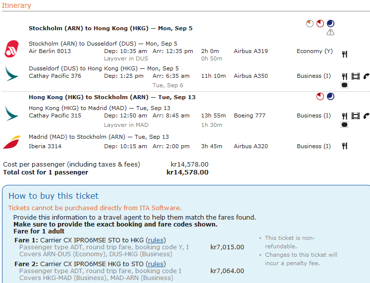 Routing: ex Stockholm/Göteborg/København/Oslo/Bergen/Stavanger-(BA:CX/SK)-London/Frankfurt/Düsseldorf/Madrid/Paris/Milan/Amsterdam/Zürich-(CX)-Hong Kong
