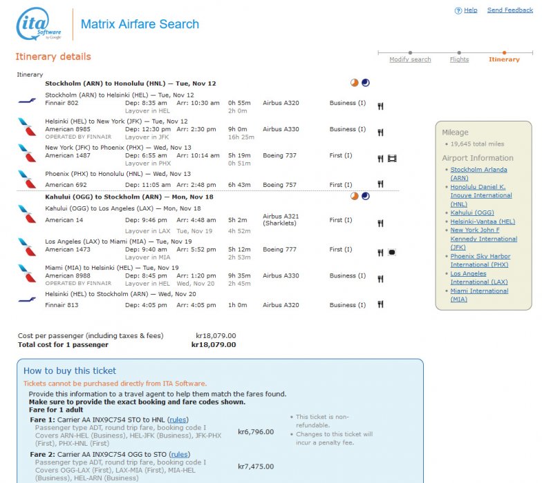 Brukar vanligen boka och ha en garanterad biljettering för mig själv, innan jag delar med mig, men jag gör ett undantag nu. Det här var min planerade resa med biljettering från AA och varför jag frågade om färdmedel för att hinna med flyget kl. 8:35.