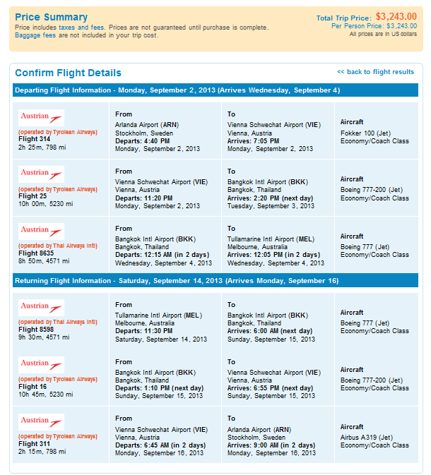 Tack Mattias. Lyckades även få till det på Travellink, men var tvungen att söka med multicity och ange Austrian specifikt.