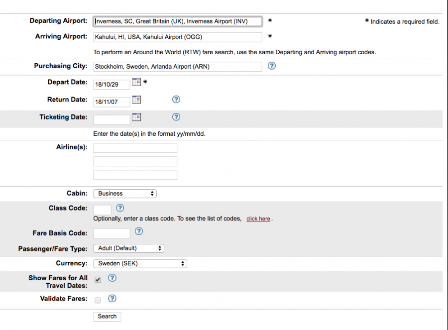 Någon som kan förklara för mig hur jag hittar denna fare i Expertflyer så man kan titta routingregler som jag antar finns angivna? Eller är det fritt så länge man är inom MPM?