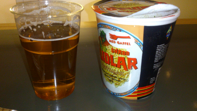 Lyxar till det med nudlar och öl i SAS ARN, T4 lounge. B-)