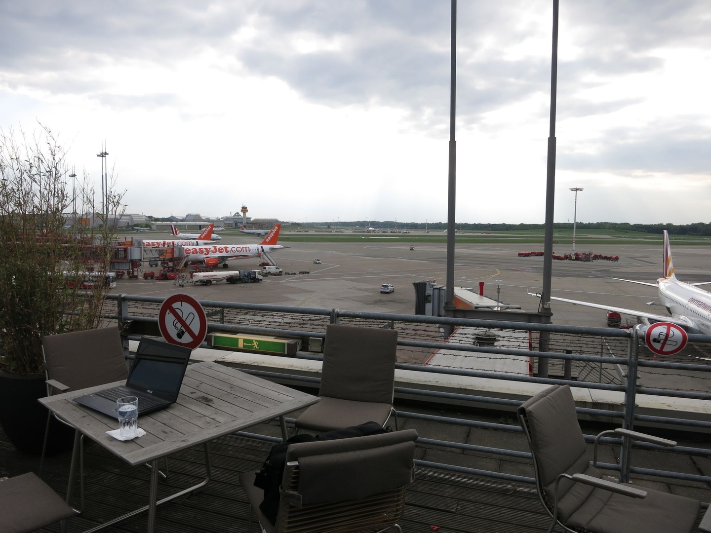 Jag sitter på terrassen i Lufthansas Senator lounge, Hamburg och tittar på plattan med ett glas Tonic water. Den här loungen är en av mina favoriter.