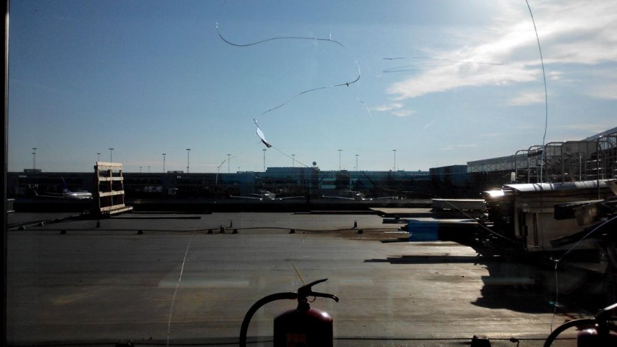 Tror att det var en rejäl mås som fick syn på fiskefrikadellerna i buffén och, väl omedveten om glaset, flög rakt in i rutan.Första gången på SAS Gold lounge på Arlanda terminal 5 efter renoveringen.