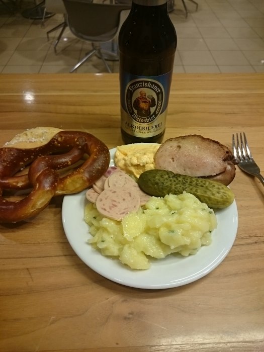Grüß Gott från Lufthansa Senator lounge i Berlin som serverar Oktoberfest mat.(jag borde egentligen inte njuta av det pga min härkomst eftersom jag är från Berlin men men)