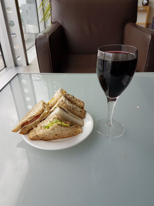 Här serveras sprit, blandade tilltugg och kakor. Här finns tranbärsjuice i barnsäker förpackning, men men lite finurlighet lyckades det bli en vodka cranberry (som är en godare flygdrink än GT, ursäkta svärandet i kyrkan).