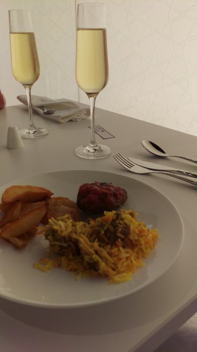 Hälsningar ifrån den nya Qatar Premium Lounge Dubai, concourse D. Hade tänkt att tillbringa ett par timmar här samt i den nya BA-loungen men incheckning mer än 3h före avgång var stört omöjligt (med bagage). Istället för att behöva vänta 90 minuter landside blev vi ombokade till "bussen" 2h tidigare men fick då lite mer bråttom...