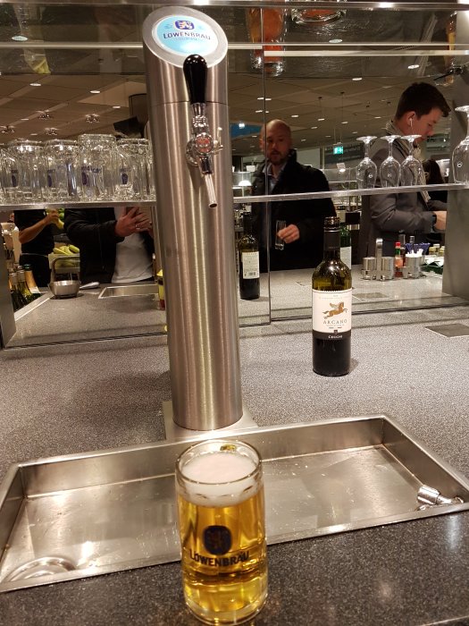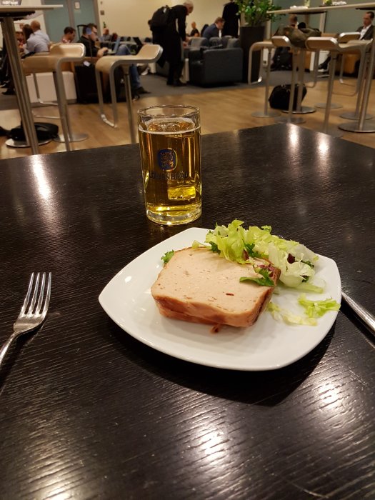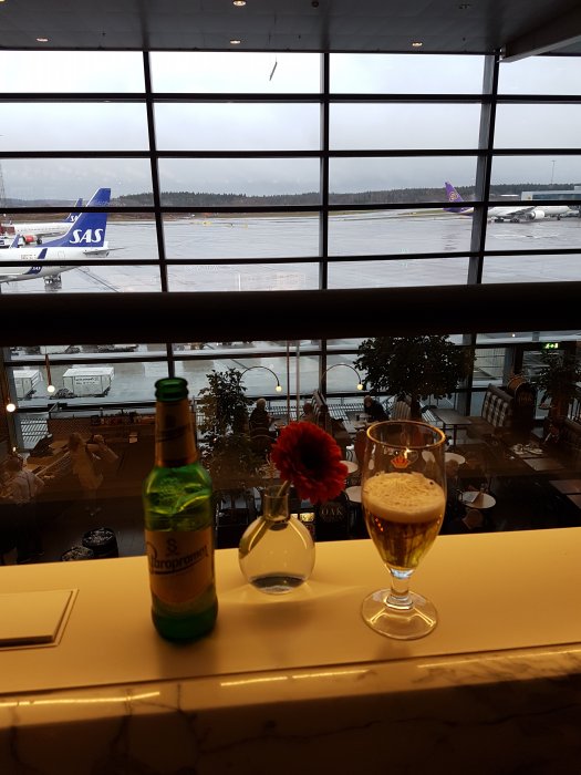 Aviator stängde vid 20:30, orkade inte byta sen. Grymt hungrig efter 2h i tåg hit, fick bli lite av champinjonsoppan. Tack och lov riktig fika i luften om 1h 45min. Blir bra.