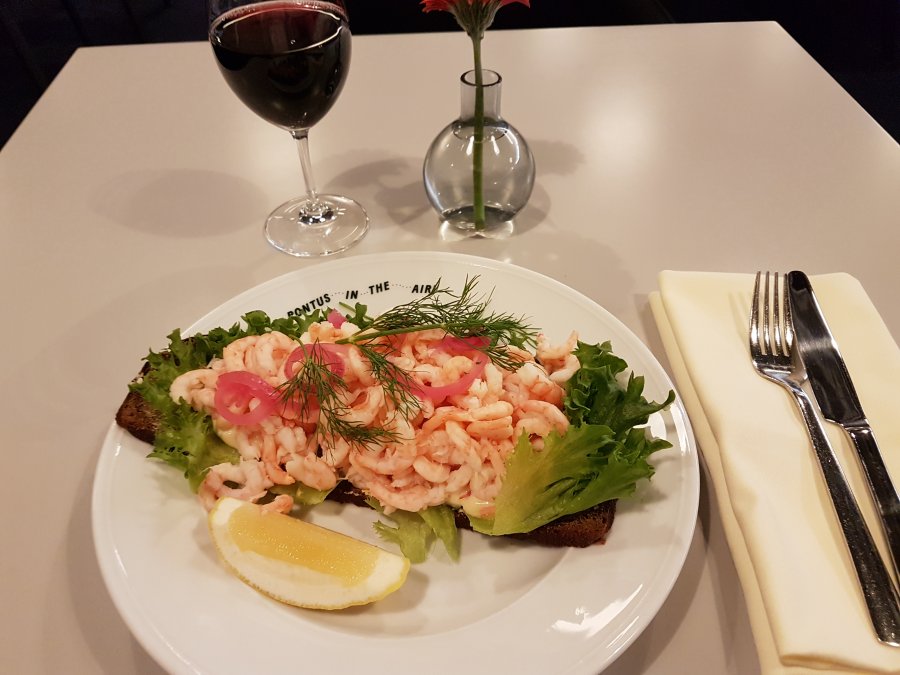 CPH SAS Guldlounge, smaklös kyckling men det räddas upp med GT och bubbel.
