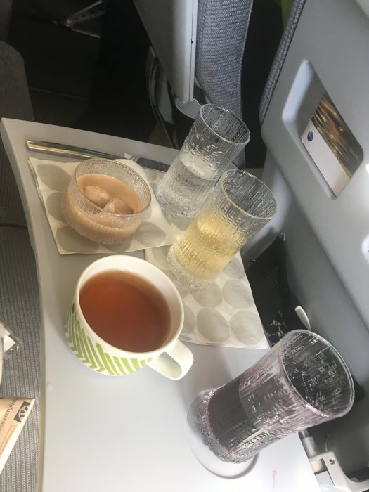Tar en latte och kollar utsikten. Är proppmätt efter flyget så även om maten såg bra ut här får jag inte ner en bit till.