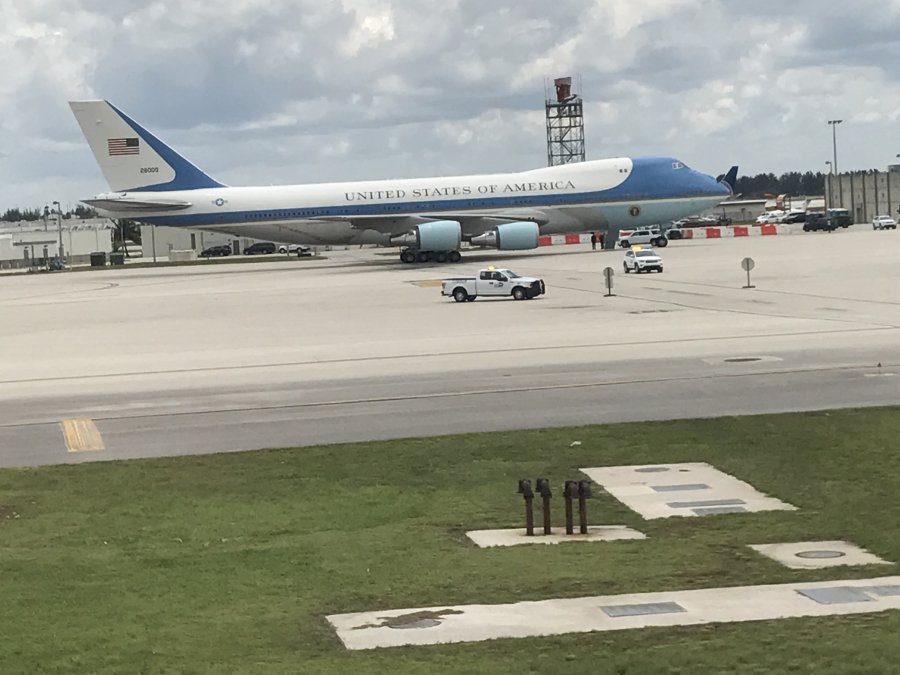 Vi blev drygt en timme sena in pga att airforce1 landade med Trump för hans weekend vila.